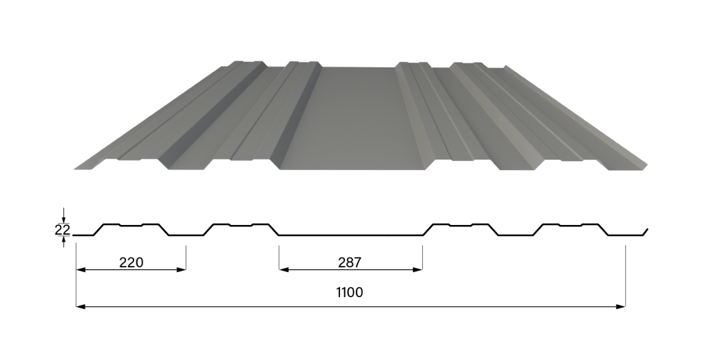 Das Trapezprofil 22/1100 Solar für Dächer, auf denen Solarmodule montiert werden, hat eine Profilhöhe von 22 Millimetern und damit einen schlanken Aufbau für so genannte In-Dach-Systeme.