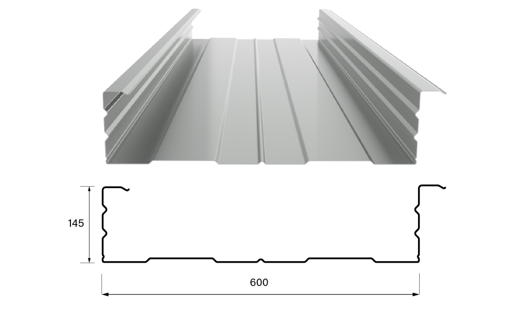 Die Kassette mit einer Arbeitsbreite von 600 Millimetern und einer Profiltiefe von 145 Millimetern. DELFT 145/600 eignet sich ideal als Unterkonstruktion für Profiltafeln. Erhältlich in verschiedenen Stahlsorten und Stahldicken, um eine kosteneffiziente Lösung für die Spannweite und die auftretenden Belastungen zu bieten.